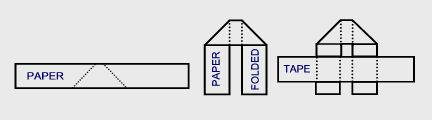 Each of the two corners is made from a piece of acid-free bond paper that is folded and taped to the backing with Filmoplast P-90 as follows: